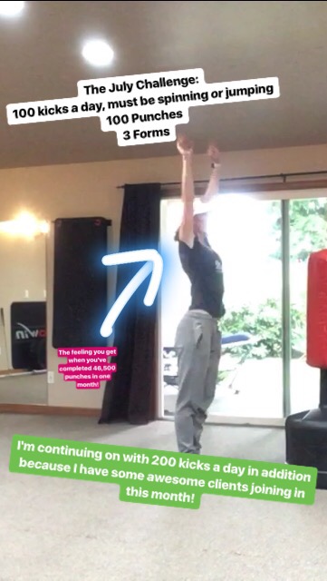 So this month we continue with the kicks, 100 of them have to be jumping or spinning, and the other 100 will be of any variety. Shout out to Liz and Kathy who have decided to join me in #200kicksaday this month!