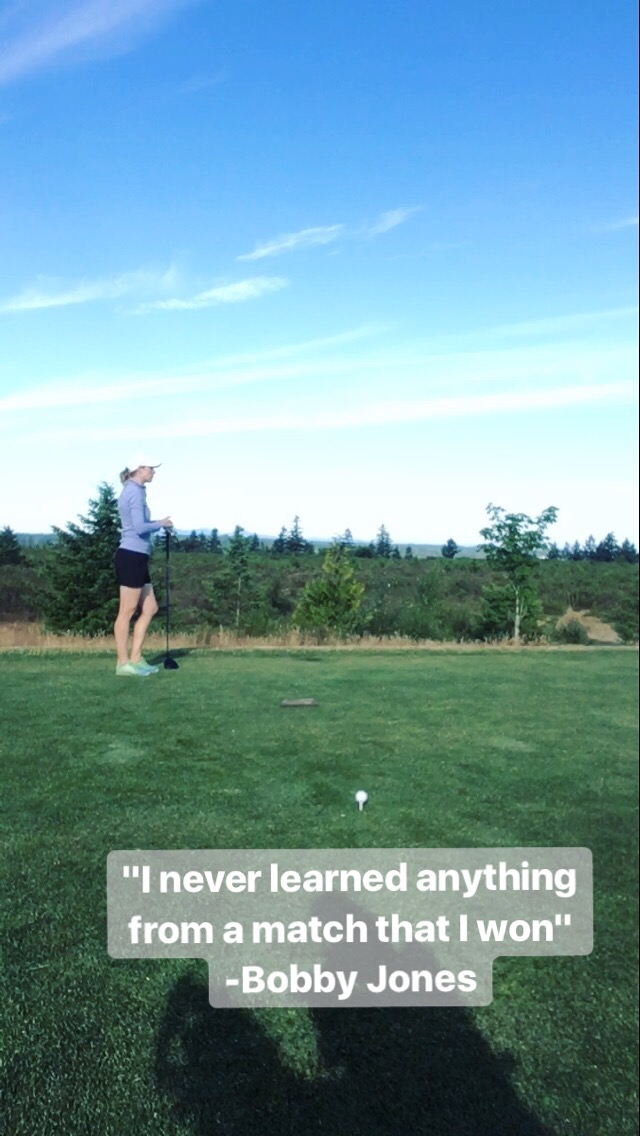 We are 1 week out from the PNGA Mid-Am, a tournament I advanced to the finals in last year only to beat myself. So this morning I put a peg in the ground before 6am with one goal in mind, make birdies. This was on of my greatest lessons from my final round loss last year and I am working on switching my mind frame from playing defense to taking command of the golf course. Today I focused on feeling confidence with each foot step and completing each swing with resilience. It will be a fun week of prep ahead, my swing feels great and with the course playing 5400 yards, my practice time this week will be focused on placing pressure on my short game.