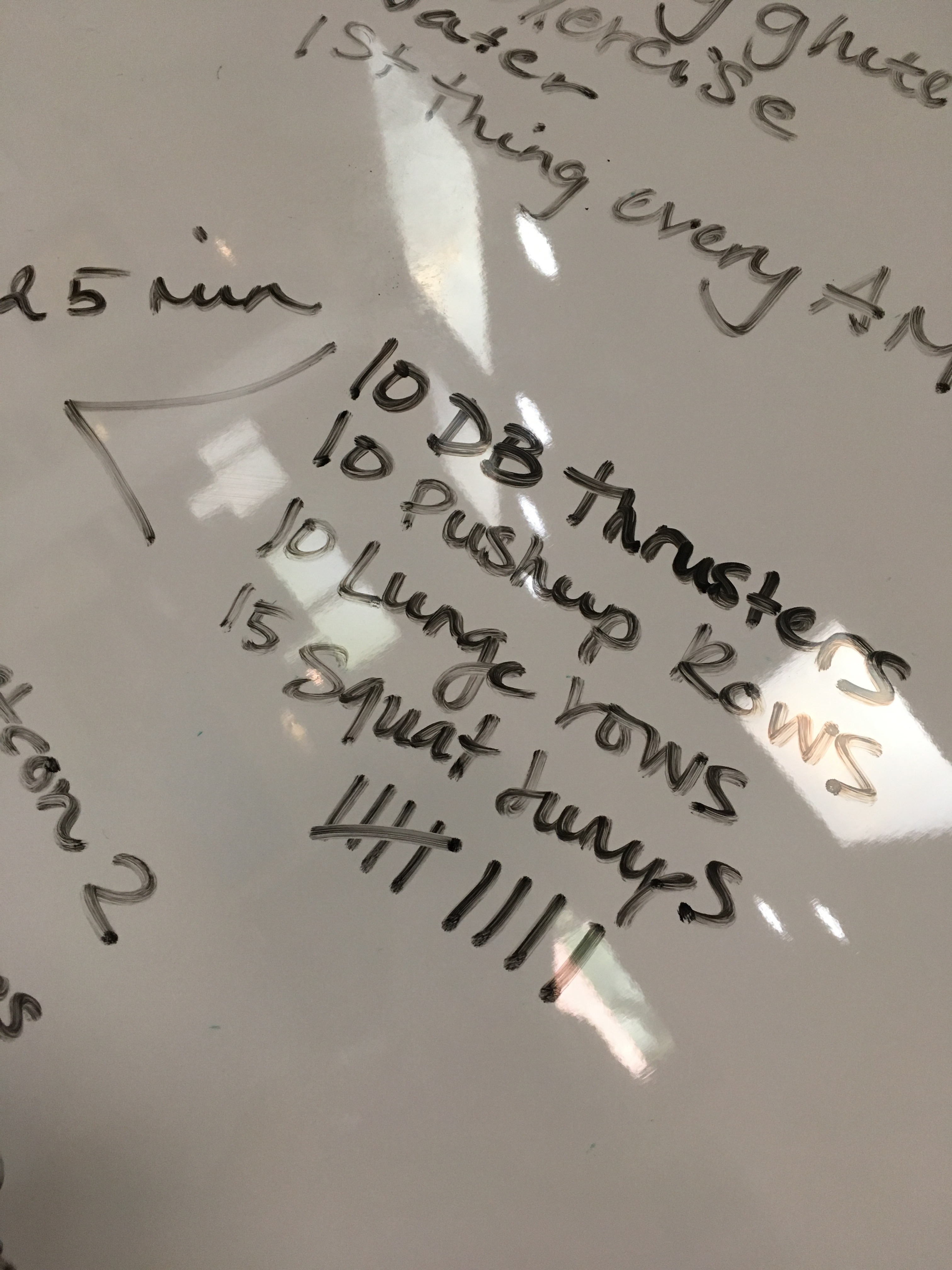 The goal is to set a timer for 25 minutes and see how many times you can perform these four exercises safely. I started with 15 pound dumbbells and then dropped to 10s because my form was starting to fail. When it was all said and done, I survived 9 full rounds! My goal is to do this workout again towards the end of the challenge and see if I can beat that number by at least 1.