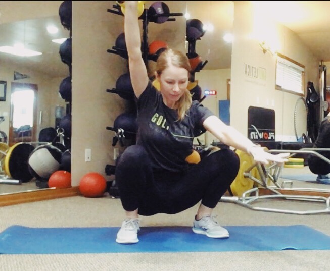 - I like being in more of a sumo squat position for this with a little wider stance and the feet turning out slightly.